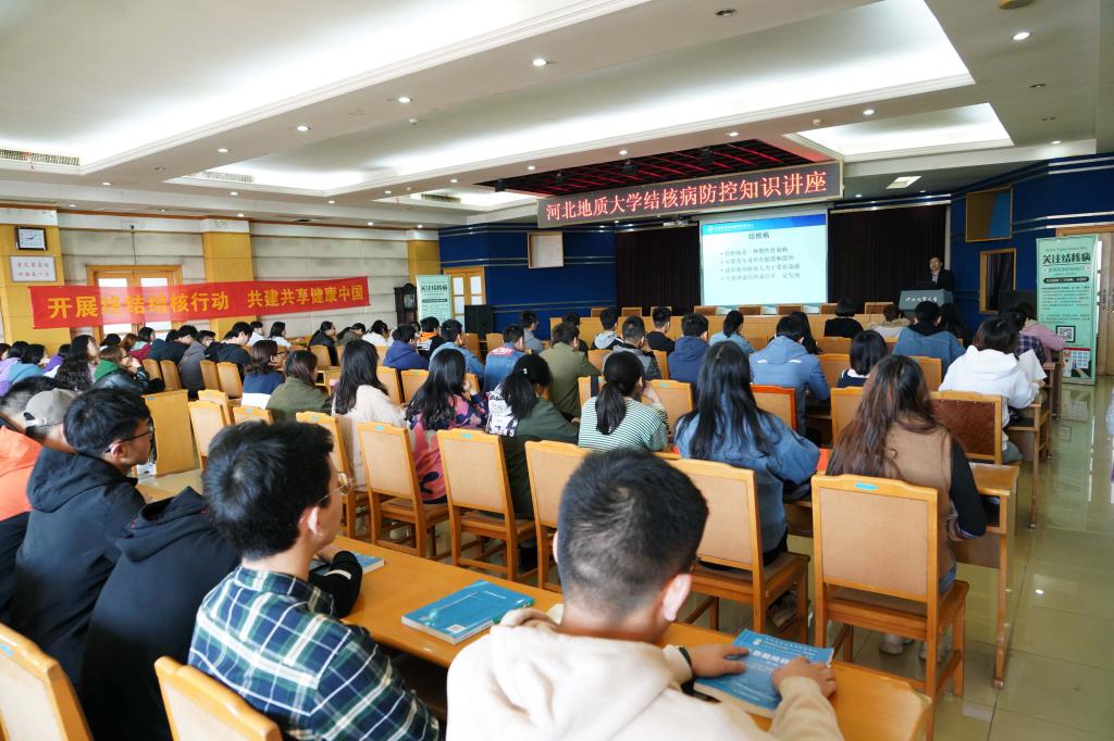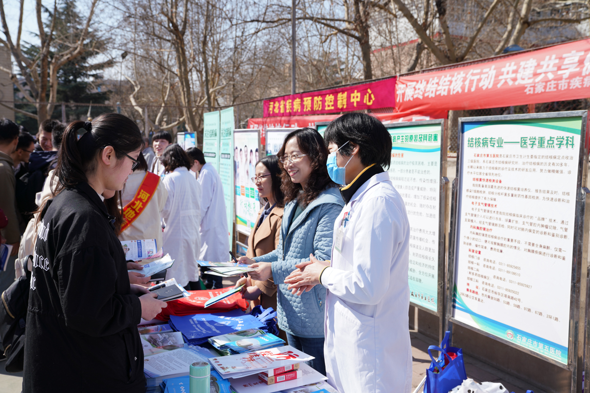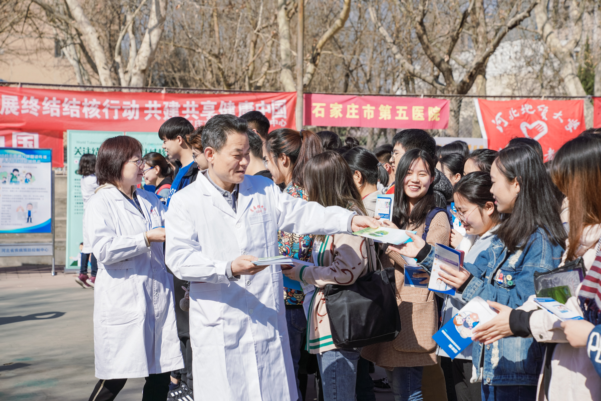 上午,省市区疾控系统、省胸科医院、市五院等单位在篮球场内设置了咨询台,为广大师生开展结核病防治现场咨询、普法教育、专家义诊、有奖问答、文艺表演等活动。省卫生健康委党组成员、省中医药管理局局长姜建明,省教育厅副厅长王廷山,省教育厅思政体卫处处长靳学军,省卫生健康委疾控处副处长吴娅莉,省疾控中心副主任王岩和河北地质大学副校长南振兴等领导出席了宣传活动,并和师生一起联名倡导“开展终结结核行动,共建共享健康中国”宣传主题。